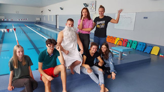 Ako už z predchádzajúceho príspevku viete, spracovali tematiku Archimedovho zákona vo forme návodu, ako sa neutopiť, aj keď celkom neodhadnete svoje plavecké schopnosti. “Matfyzáci“ oživili samotného Archimeda zo Syrakúz a či veríte, či nie, tento sa prechádzal po chodbách našej školy pokrikujúc svoje známe: „Heuréka!“. Objavil sa dokonca v našom plaveckom bazéne, kde svoj zákon názorne vysvetlil študentom a s ukážkami mu pomohla aj naša úspešná plavkyňa Tijana Feketeová, juniorská majsterka Slovenska (50 m motýlik). O tomto všetkom podali svedectvo redaktori televízie Matfýza. Pozrite si víťazné video.