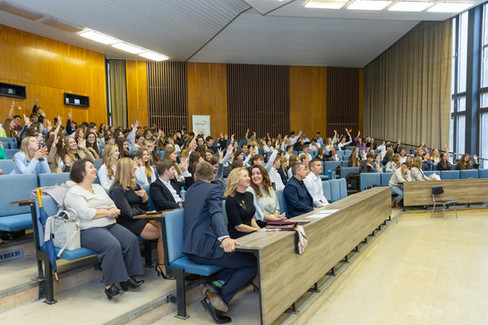 V piatok 26. septembra 2025 sa v priestoroch Auly Pedagogickej fakulty Univerzity Komenského v Bratislave uskutočnila slávnostná ceremónia oceňovania absolventov programu Medzinárodná cena vojvodu z Edinburghu (DofE). Atmosféra bola plná emócií – očakávania, radosti, ale najmä hrdosti. Na pódiu stáli desiatky mladých ľudí, ktorí si prešli cestou plnou výziev, odhodlania a vytrvalosti. Medzi nimi malo svoje zastúpenie aj naše Slančíkovo – 2 študenti GYM úspešne zdolali bronzovú úroveň DofE a 6 študentiek GYM striebornú.